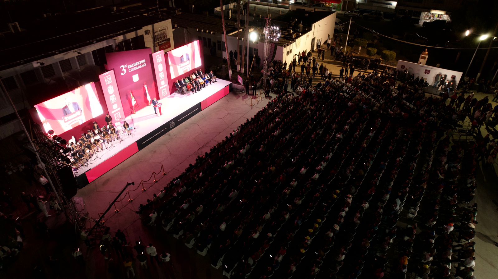 El tercer encuentro ciudadano es el momento propicio para que las y los sudcalifornianos conozcan el trabajo de sus autoridades, los logros y metas alcanzadas durante los primeros tres años de servicio al pueblo, “lo que hemos hecho con transparencia, responsabilidad, justicia y dignidad, entendiendo que el poder solo se convierte en virtud cuando se pone al servicio de los demás, gobernando para todas y para todos, con énfasis en los que menos tienen”, precisó el gobernador Víctor Manuel Castro Cosío.