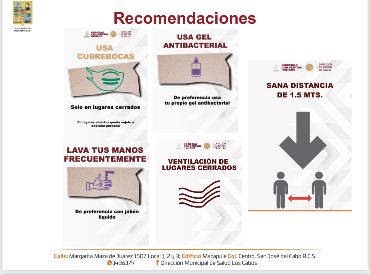 “Nosotros vamos a redoblar los esfuerzos de la mano de las demás direcciones del Ayuntamiento de Los Cabos, verificando que se respeten estos acuerdos, particularmente los aforos y el horario de cierre de los establecimientos. Invitamos a la ciudadanía en general a evitar reuniones o lugares que estén muy concurridos, así como a hacer uso de su cubrebocas en todo momento. Estamos ante una 5ta ola que se está viviendo en todo el país, aunque ha sido con sintomatología de cuadros muy leves, la indicación es continuar con las medidas sanitarias, redoblar esfuerzos y respetar las indicaciones de este Comité”, enfatizó el Dr. Costich Perez.