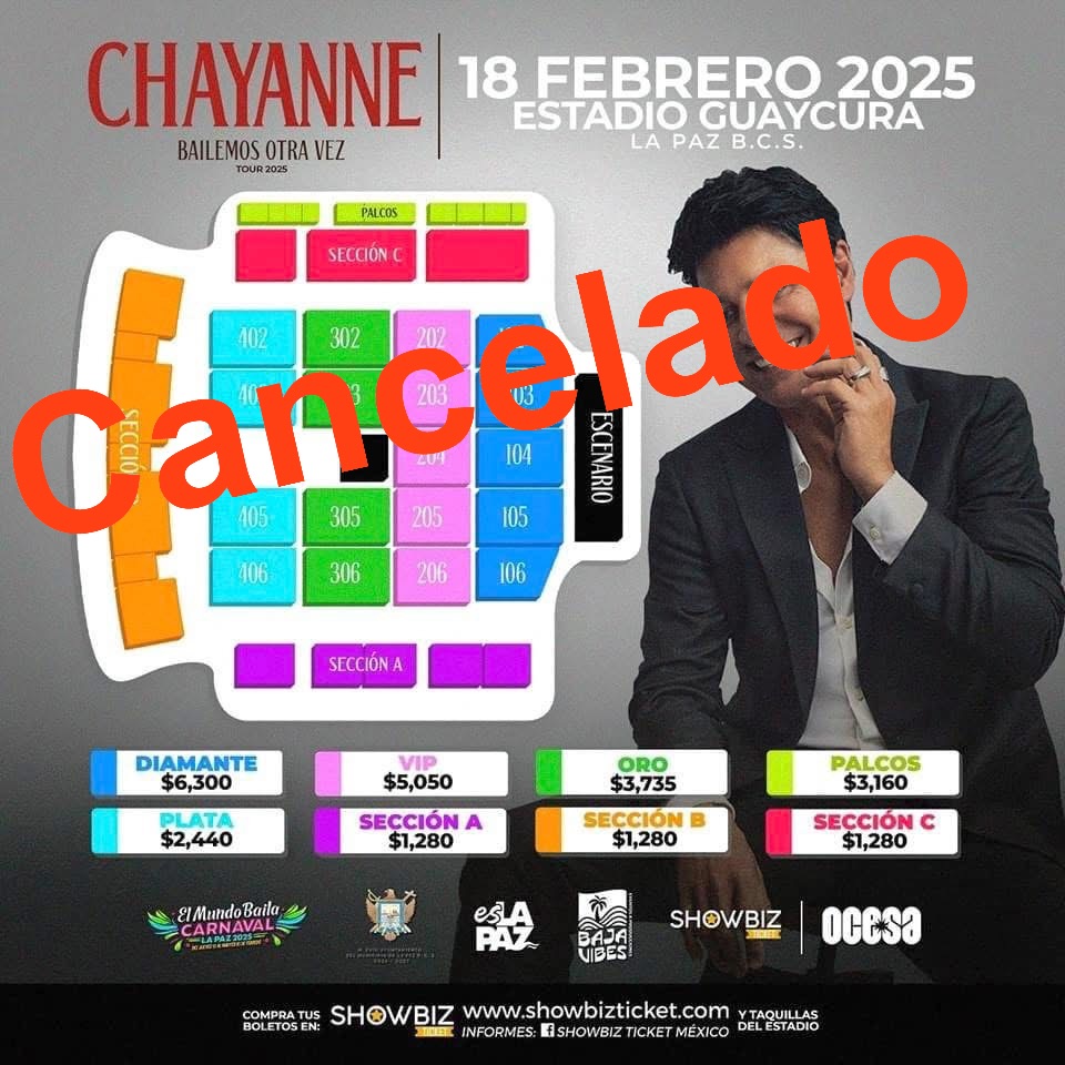 Los organizadores del mega concierto de Chayanne en La Paz anunciaron este 28 de diciembre que el cantante boricua no se presentará en el estadio Arturo C. Nahl en febrero en la ciudad de La Paz, ya que la información correcta es que se presentará en el estadio de futbol «Guaycura» el día 18 de febrero, como se anunció.