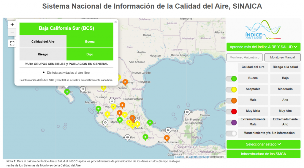 Yssel Gadar Aguayo, responsable del Departamento de Mitigación de la dependencia estatal, indicó que esta es la primera vez que Baja California Sur forma parte del sistema, lo que permite mostrar datos clave sobre contaminantes ambientales, como: Dióxido de azufre (SO₂), Monóxido de carbono (CO), Óxidos nitrosos (NOₓ), material particulado (PM10 y PM2.5) y Ozono (O₃).