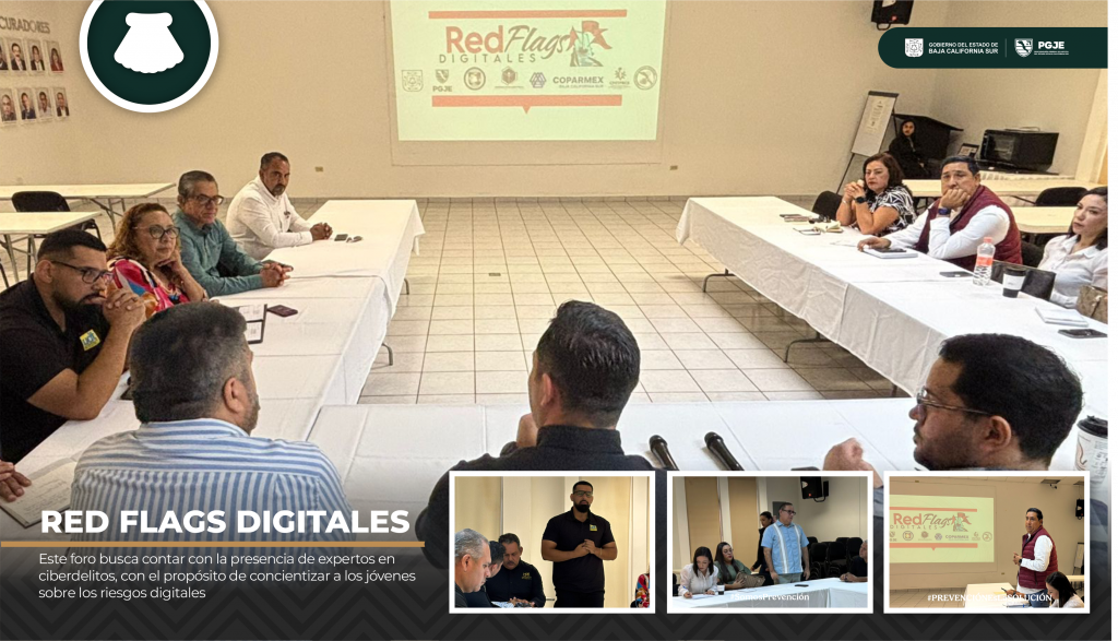 Concientizar a los jóvenes sobre los riesgos digitales y brindarles herramientas para prevenir ser víctimas de este tipo de delitos, es el objetivo del foro de ciberseguridad “Red Flags Digitales”, que organiza la Procuraduría General de Justicia del Estado (PGJEBCS), en coordinación con Confederación Patronal de la República Mexicana en Baja California Sur, (COPARMEX BCS).