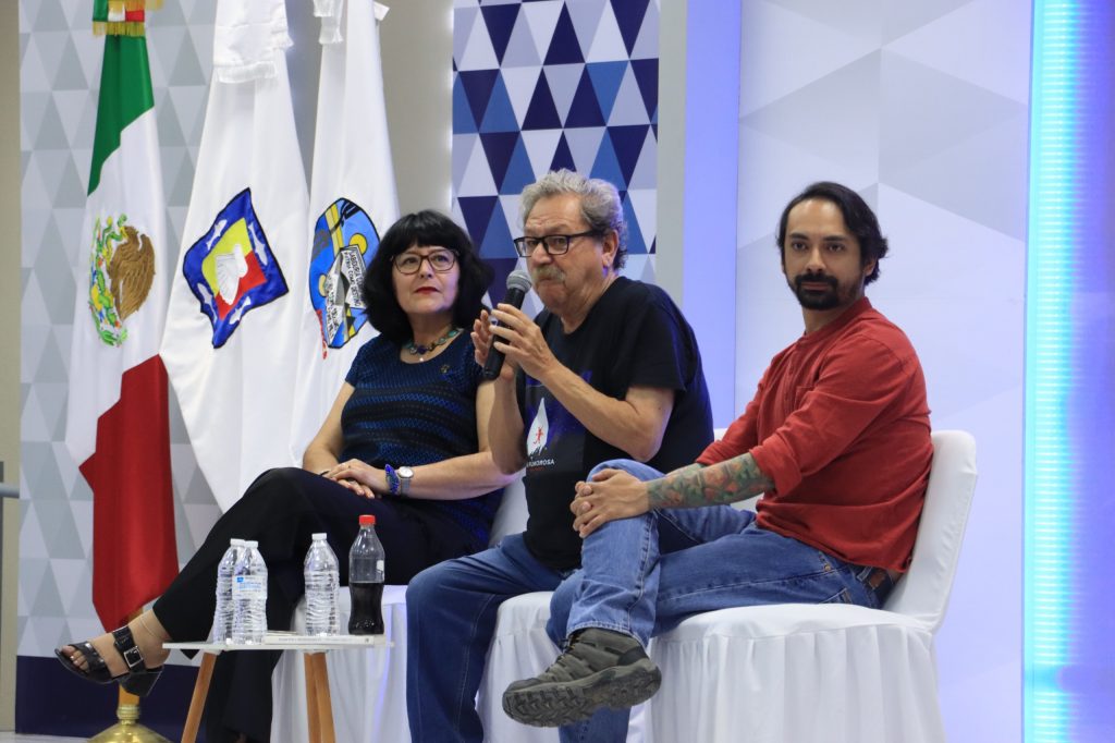 La bienvenida estuvo a cargo de la Dra. Alba Eritrea Gámez Vázquez, secretaria general de la UABCS, quien destacó la relevancia de contar con la presencia de una figura de la talla de Taibo II, ampliamente reconocido por su labor como divulgador cultural, investigador y promotor de la lectura en México.