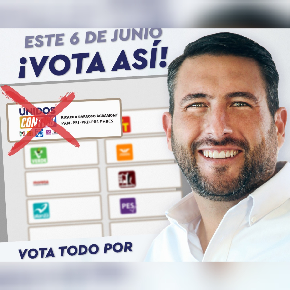 Ricardo Barroso, próximo presidente municipal de La Paz por la gran alianza «Unidos Contigo», informó a los ciudadanos que el próximo 6 de junio, día de la contienda electoral, al entregar su voto de confianza por los candidatos aliancistas, deberán cruzar el logotipo de la coalición conformada por PAN-PRI-PRD-PRS-Partido Humanista.