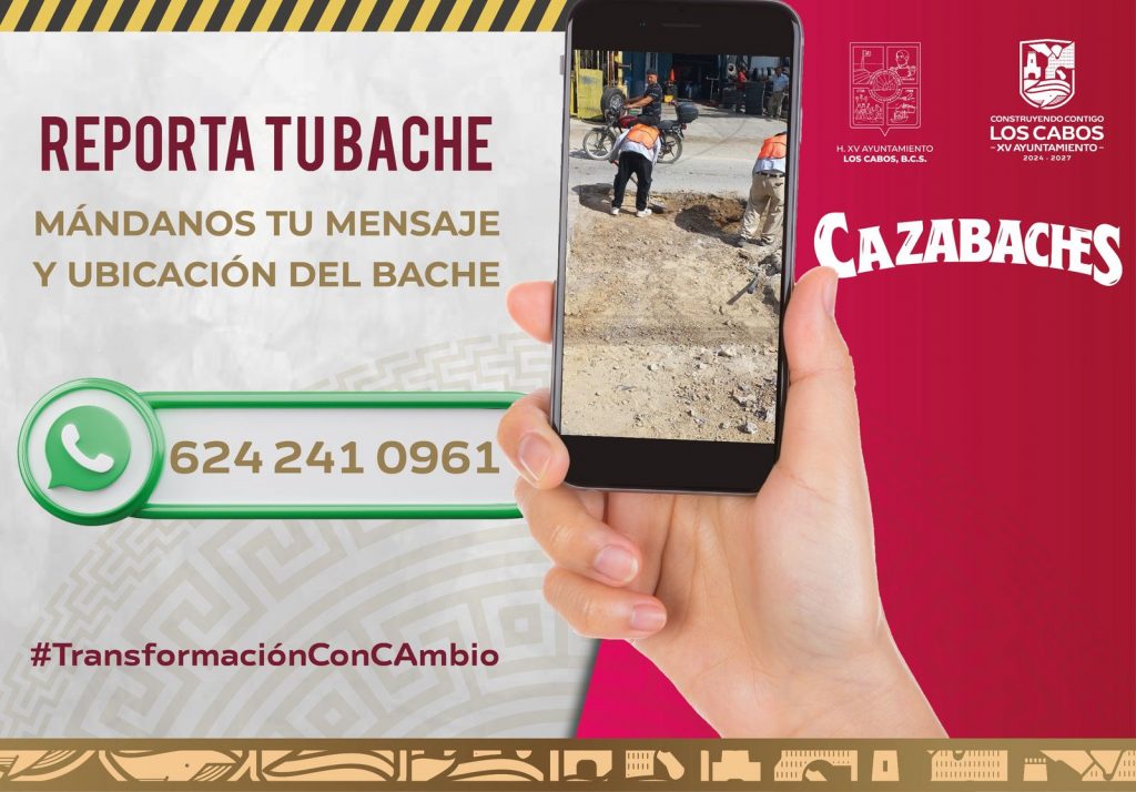 En el XV Ayuntamiento de Los Cabos que encabeza el Presidente Municipal, Arquitecto Christian Agúndez pone a disposición de la comunidad el número telefónico para reportar los baches de tu ciudad.