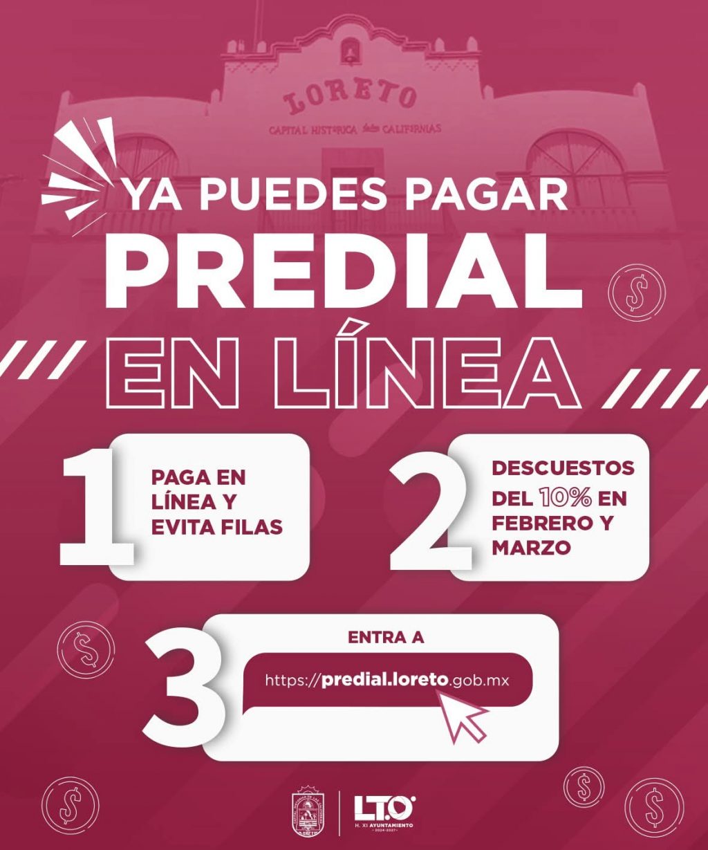 Loreto, B.C.S., 3 de marzo de 2026.- Con el objetivo de facilitar la regularización de contribuyentes y mejorar la calidad de los servicios a la ciudadanía, la Dirección de Ingresos del XI Ayuntamiento de Loreto puso en operación un portal digital para el pago del impuesto predial a través de internet, informó la titular de la dependencia, Mercedes Vidaurrázaga.