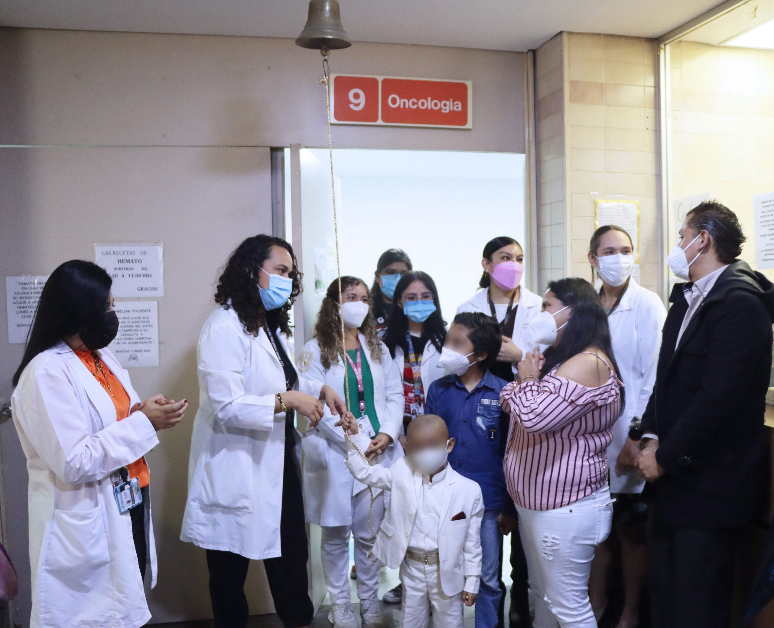 Después de 15 meses de haber sido diagnosticado, Beto de cinco años de edad en su último día de consulta tocó “la campana de la vida” que se encuentra en el área de la Consulta Externa de la Unidad Médica de Alta Especialidad (UMAE) «Dr. Silvestre Frenk Freund”, símbolo que representa la victoria sobre la enfermedad.