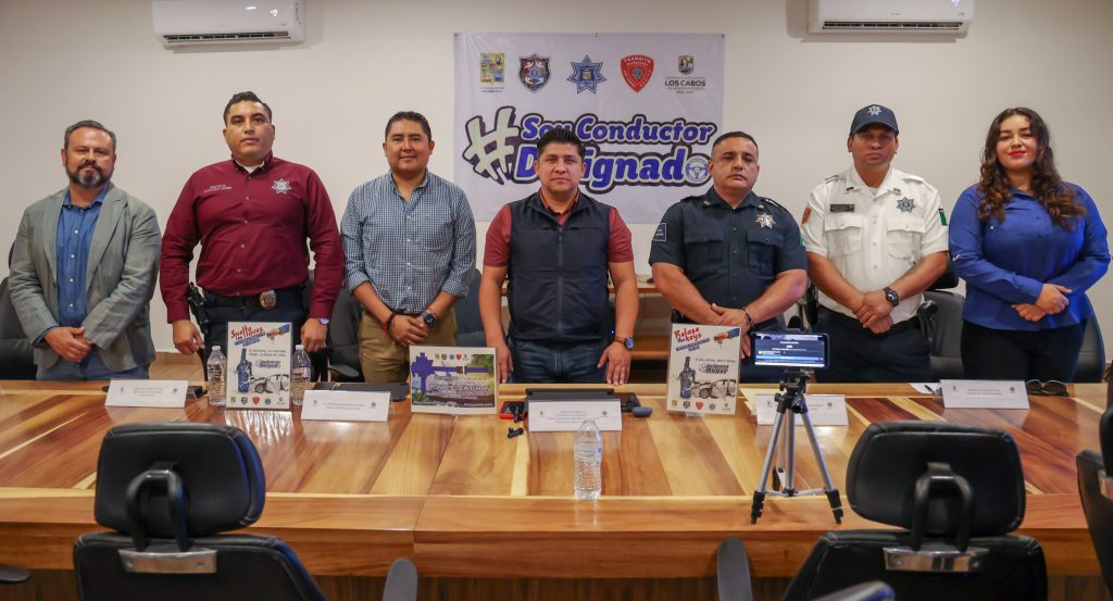Los Cabos, B.C.S.- Atendiendo las indicaciones del alcalde del XV Ayuntamiento de Los Cabos, Christian Agúndez Gómez, de dar prioridad a la difusión de campañas preventivas, la Dirección General de Seguridad Pública Policía Preventiva y Tránsito Municipal, a través de su Dirección de Vinculación, llevó a cabo una rueda de prensa donde se dio a conocer el plan preventivo “Cinturón Navideño” y “Soy Conductor Designado”.
