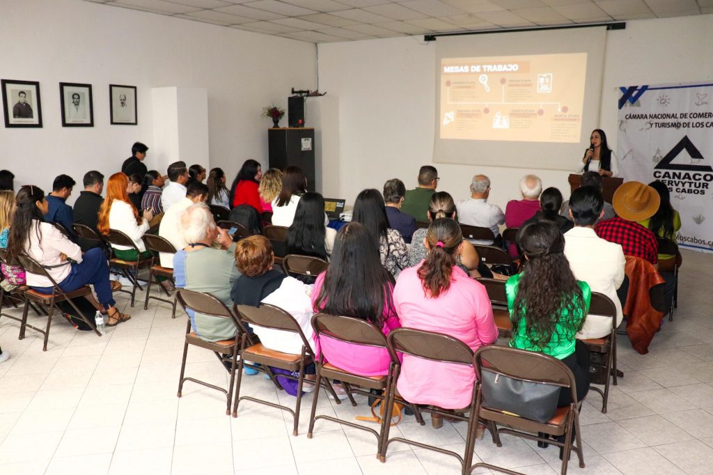 Los Cabos, Baja California Sur.- Desde el auditorio de la Cámara Nacional de Comercio (Canaco Servytur) se llevó a cabo el foro de consulta popular con el tema “Desarrollo Económico Sostenible”, donde la delegada municipal de Cabo San Lucas Karina Jesús de la O Uribe, acompañada de personas integrantes del sector empresarial, ciudadanía en general, autoridades municipales y delegacionales pudieron escuchar las diversas propuestas y proyectos para la integración de las mismas al Plan Municipal de Desarrollo (PMD) 2024-2027.