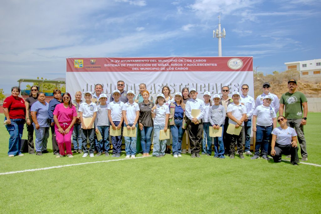 Los Cabos, Baja California Sur | 13 de abril del 2026.– El XV Ayuntamiento de Los Cabos, a través de la Secretaría Ejecutiva del Sistema de Protección Integral de Niñas, Niños y Adolescentes (SIPINNA) de Los Cabos, llevó a cabo la jornada asistencial “Creciendo con Amor” en el campo de fútbol ubicado en el vado de Santa Rosa, con el objetivo de promover los derechos de niñas, niños y adolescentes.