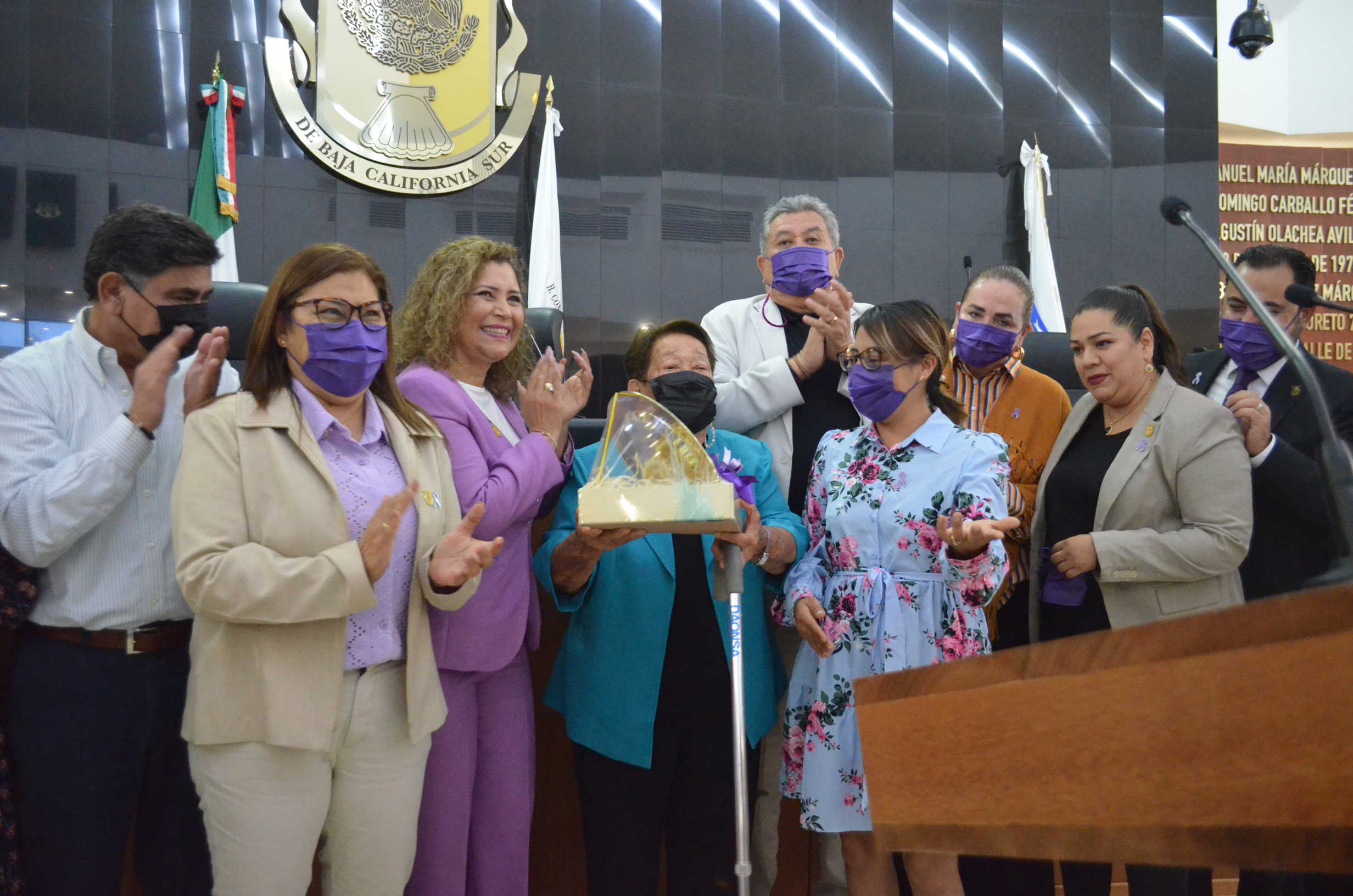 A nombre del Congreso del Estado, la Comisión de Igual de Género de la XVI Legislatura otorgó el reconocimiento a la profesora María Luisa Salcedo Morales, quien sentó las bases para la participación política de las mujeres en Baja California Sur.