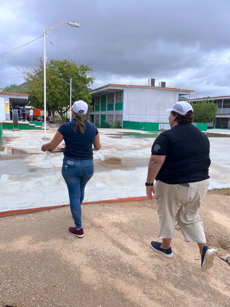 Asimismo, la regidora brindó apoyo al personal que realiza labores de desazolve de calles, entregando líquidos y alimentos para fortalecer su esfuerzo en beneficio de la población afectada.
