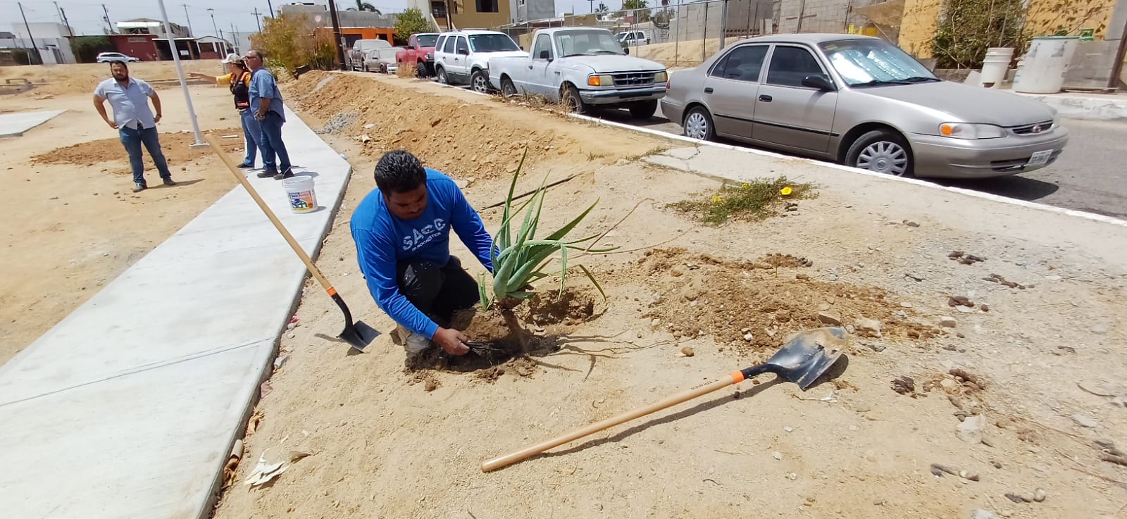 En ese sentido, se formalizó la tercera etapa de reforestación en el nuevo parque ubicado en la colonia El Rosarito en San José del Cabo, donde hasta el momento se han plantado 100 especies de flora como sábila, agave, palma washingtonia y datilera, sin embargo, por la dimensión del espacio público, se trabajará en 6 etapas, por medio de las cuales se busca reforestar con 220 plantas.