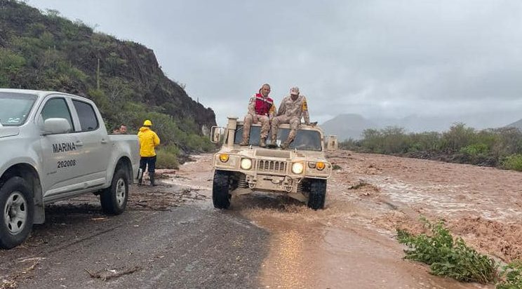 Con el apoyo de efectivos del ejército Mexicano, Guardia Naciona, Policía Estatal Preventiva y Bomberos, esta tarde fueron rescatados con vida los tres pasajeros y el conductor del autobús de la empresa ABC que intentó cruzar el aroyyo en el tramo Puerto Esoncido-Loreto y que viajaba de Norte a Sur, y que fue arrastrado por la corriente de aguas broncas de las lluvias que ha provocado los efectos del huracán «Kay».