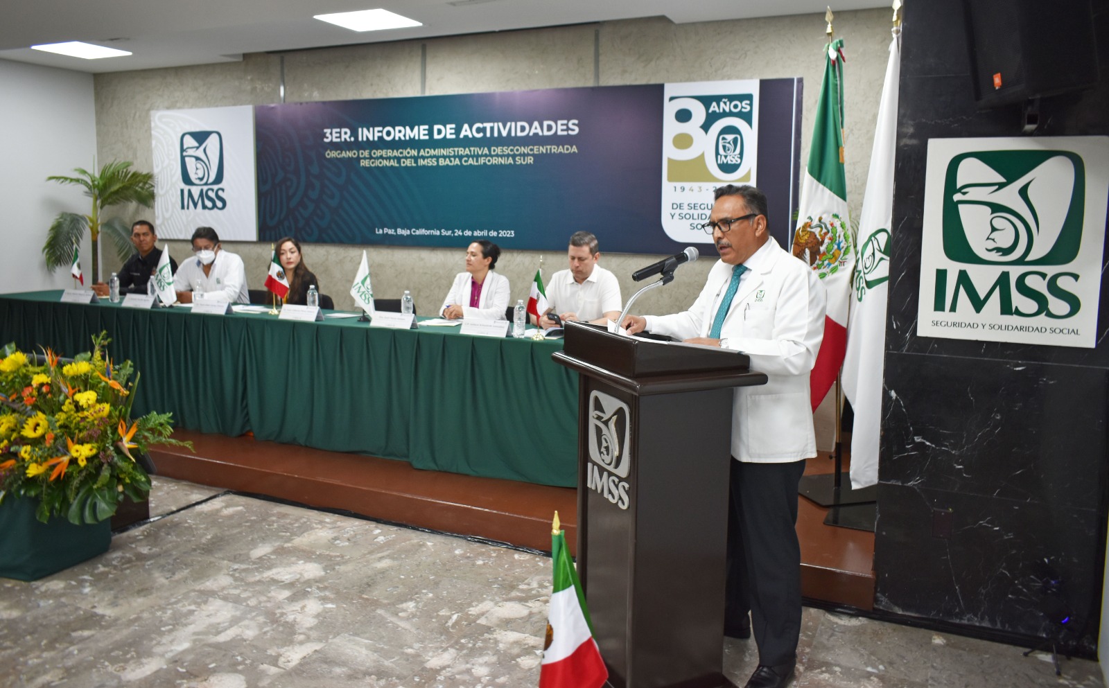 El titular del Instituto Mexicano del Seguro Social (IMSS) en Baja California Sur, doctor Juan Gilberto Pérez Soltero, rindió su tercer informe de actividades, con fundamento en los artículos 92. Fracción I, fracción III, 97 y 99 del reglamento Interior IMSS.