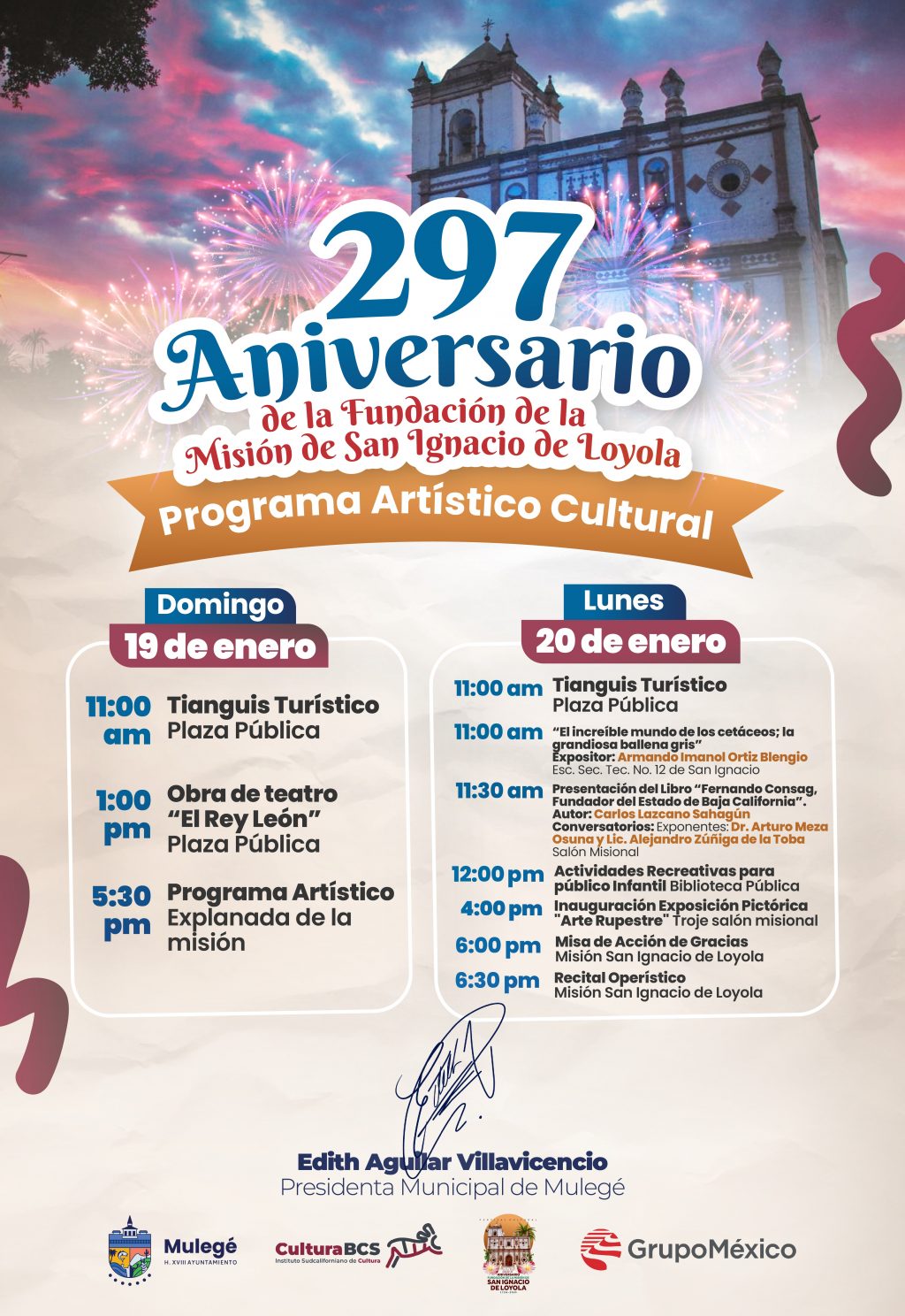 Del 19 al 20 de enero, por segundo año consecutivo tendrá lugar la celebración del 297 Aniversario de la Fundación de la Misión de San Ignacio de Loyola, enmarcado por un amplio programa cultural y artístico.