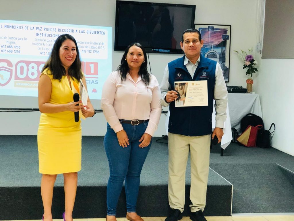 Al término de la capacitación, la H. XV Administración, encabezada por el alcalde Christian Agúndez Gómez, a través de la coordinadora de la CMDH Claudia Armenta reconoció a los ponentes Wendy García Manríquez y Jorge Medina, por su valiosa contribución al fortalecimiento de la atención a las víctimas.