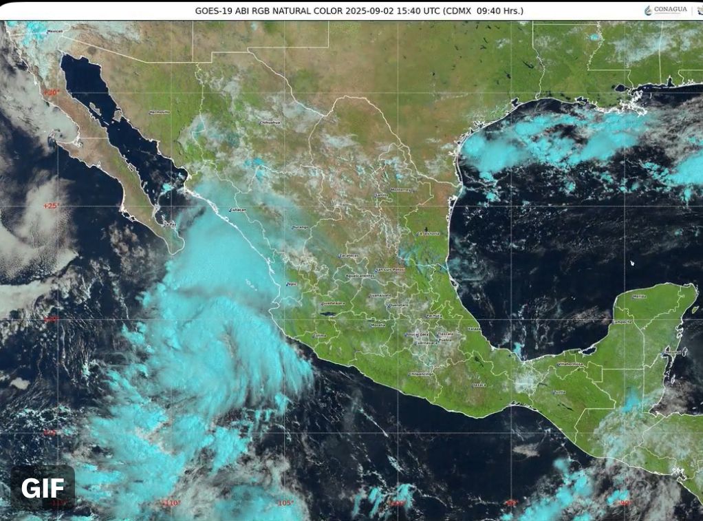 Los desprendimientos nubosos del sistema originarán lluvias intensas (de 75 a 150 milímetros [mm]) en Baja California Sur, Sinaloa y Nayarit, y muy fuertes (de 50 a 75 mm) en