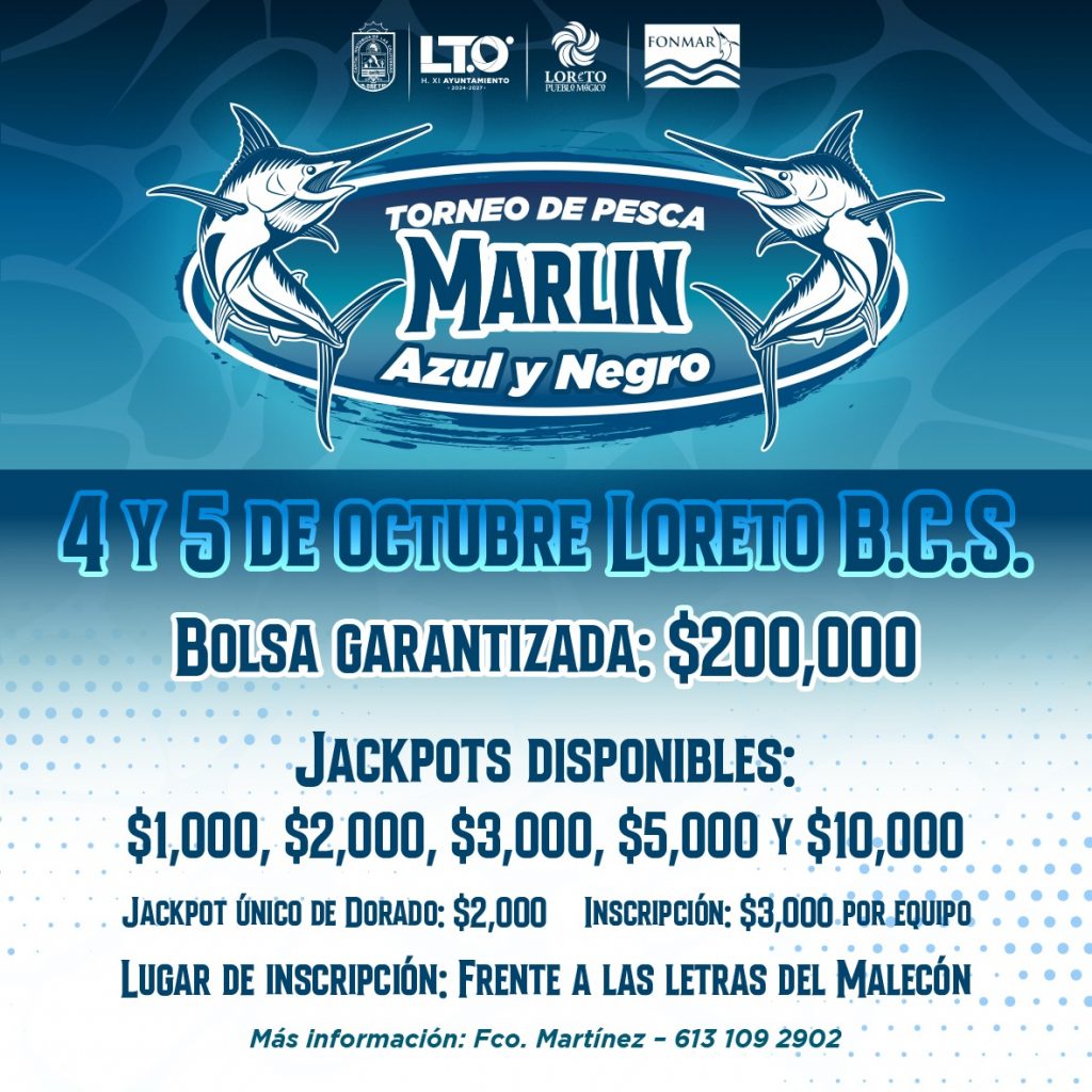Loreto, B.C.S.| 2 de octubre de 2025 — Loreto, considerado uno de los mejores destinos mundiales para la pesca deportiva, se alista para celebrar su primera edición del «Torneo de Marlín Azul y Negro» este 4 y 5 de octubre. El evento promete una bolsa acumulada superior a los 200,000 pesos en las majestuosas aguas del Mar de Cortés.