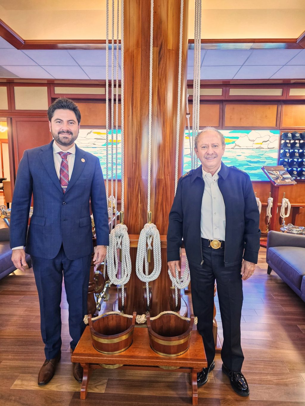 El director general de la Administración Portuaria Integral de Baja California Sur, Narciso Agúndez Gómez, se reunió este jueves con el Almirante Secretario de Marina, Rafael Ojeda Durán, con la finalidad de plantear proyectos prioritarios que traerán grandes beneficios para la población sudcaliforniana.