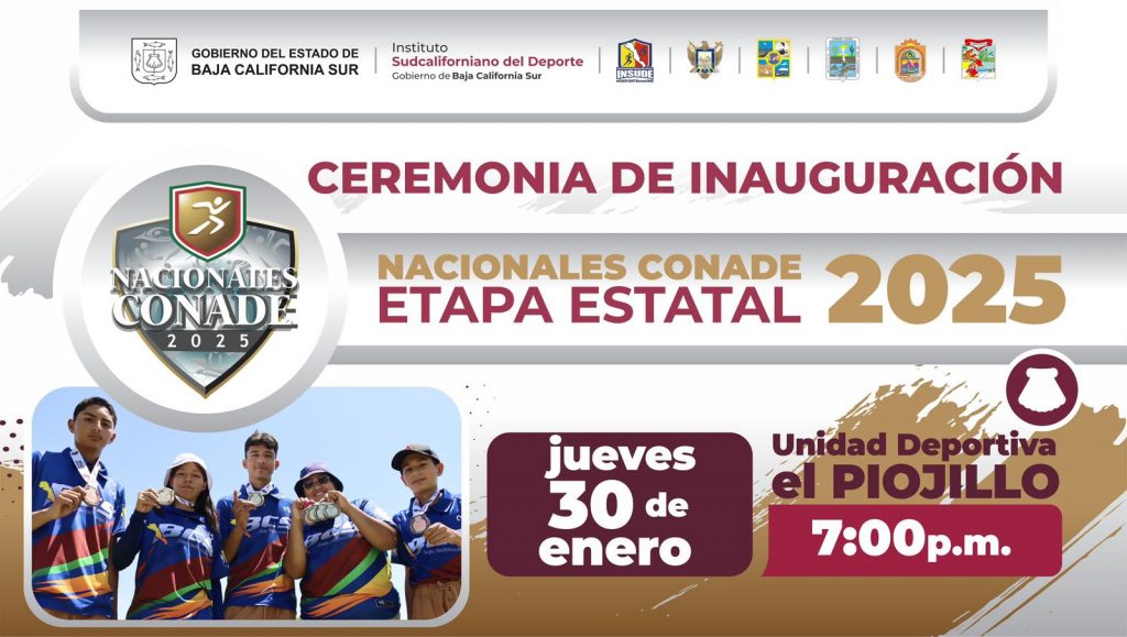 Al respecto, el director del Instituto Sudcaliforniano del Deporte (INSUDE), Noé Fiol Verduzco, anunció que la ceremonia de inauguración del evento se llevará a cabo hoy jueves 30 de enero en el Centro Deportivo «El Piojillo» a las 19:00 horas con la presencia de las y los atletas sudcalifornianos y autoridades deportivas.