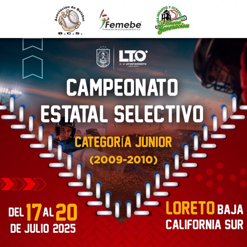 Loreto, B.C.S. 15 de julio de 2025.– del 17 al 20 de julio, Loreto será sede del Campeonato Estatal Selectivo de Béisbol categoría Junior que abarca a jóvenes nacidos entre los años 2009 y 2010, confirmó el regidor comisionado a deporte en el municipio de Loreto Humberto Murillo Davis.