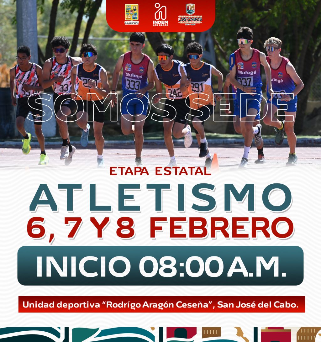 Los Cabos, Baja California Sur | 5 de febrero del 2026..– El Instituto del Deporte del Municipio de Los Cabos (INDEM) dio a conocer que todo se encuentra listo para la realización de la Etapa Estatal de Atletismo, la cual se desarrollará los días 6, 7 y 8 de febrero en la Unidad Deportiva “Rodrigo Aragón Ceseña” en San José del Cabo, consolidando a este municipio como anfitrión de importantes encuentros deportivos a nivel estatal.