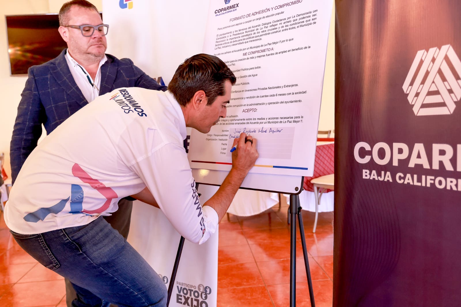 * En reunión con la Coparmex, el candidato a la presidencia municipal de La Paz,…
