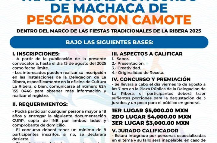 Los Cabos Municipios Concursos de gastronomía y fotografía son parte de las Fiestas Tradicionales La Ribera 2025 11 agosto, 2025 Juan Manuel Geraldo Las inscripciones permanecen abiertas hasta el 13 de agosto en la oficina de Cultura…