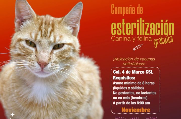 Los Cabos Municipios Del 24 al 28 de noviembre, Instituto Municipal de Salud de Los Cabos realizará campaña de esterilización gratuita 23 noviembre, 2025 redacción Es para mascotas canina y felina; en la colonia 4 de Marzo a partir de…