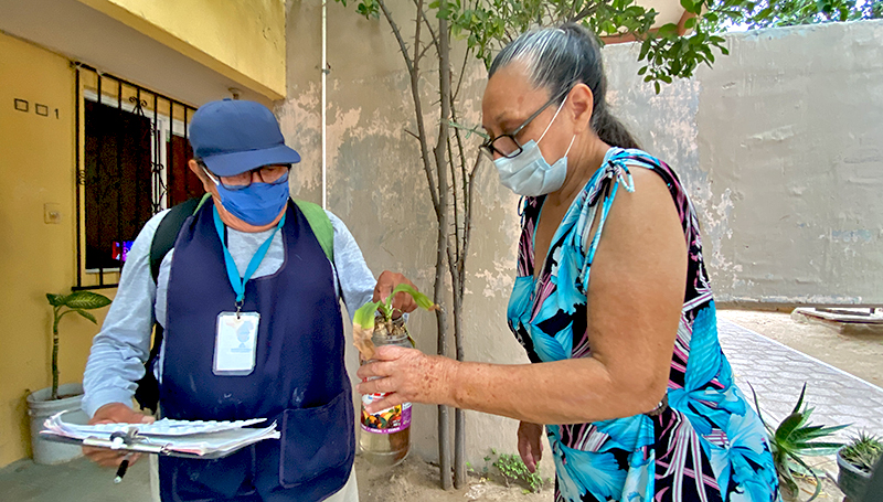 Los equipos del programa de vectores realizan visitas domiciliarias para aplicar larvicida en depósitos de…