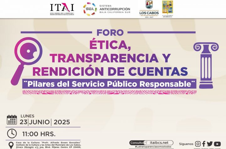 Los Cabos Municipios El Ayuntamiento de Los Cabos y el Sistema Estatal Anticorrupción convocan al foro “Ética, Transparencia y Rendición de Cuentas” 22 junio, 2025 Juan Manuel Geraldo El lunes 23 de junio a las 11:00 de la mañana, en la Casa de…
