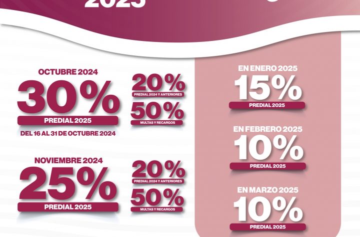 Destacadas Este 16 de octubre, inician descuentos de hasta el 30% de descuento en pago del predial 2025 en La Paz 15 octubre, 2024 redacción Este miércoles 16 de octubre, inicia el programa temporal de descuentos en el pago del…