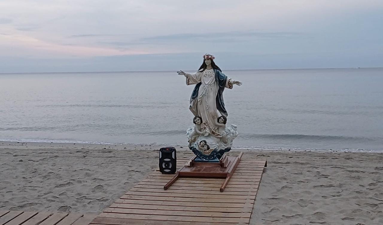Durante el paseo de la virgen en la bahía de La Ribera y la bendición…
