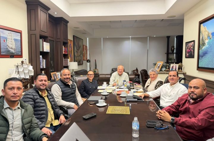 El secretario general de Gobierno y el alcalde de Los Cabos, Oscar Leggs Castro, acompañan…