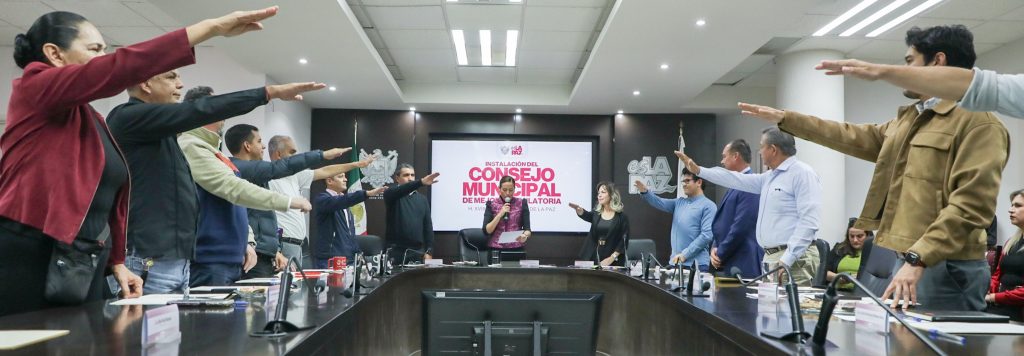 Se procedió a la toma de protesta de los integrantes de dicho Consejo encabezado por la Presidenta Municipal, Milena Quiroga Romero; el Director de Transparencia y Mejora Regulatoria del Gobierno del Estado, Juan Ramón Rojas Arípez; la Síndica Municipal, Yadane García Carrazco; los Regidores, Néstor Alejandro Araiza Castellón y Bernardo Montiel Ochoa; el Rector de la UABCS; Dante Salgado González; el Presidente del Consejo Coordinador Empresarial de La Paz, Omar Salvador Gutiérrez Trujillo.