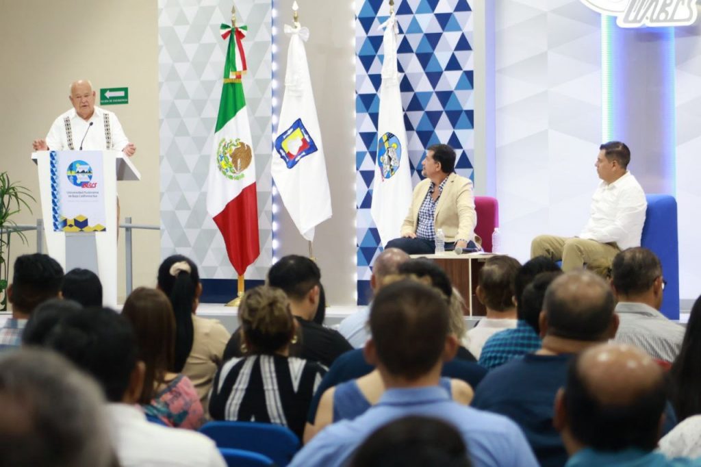 Reunidos en las instalaciones de la Universidad Autónoma de Baja California Sur, con la presencia de la presidenta del DIF Estatal, Patricia López Navarro y la alcaldesa Milena Quiroga Romero, titulares del poder Legislativo y Judicial, servidores públicos, instituciones educativas, alumnos, y público en general, el ponente Armando Javier Díaz abordó diversos temas como: violencia de género, qué es la masculinidad, tipos de violencia, desafíos para la no violencia y para la equidad de género, entre otros.