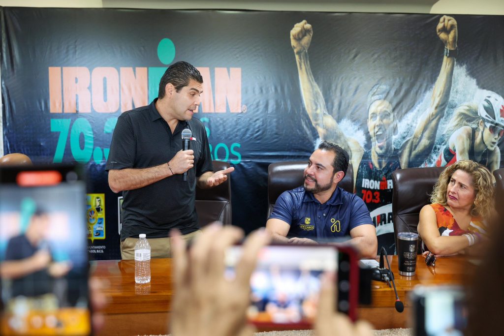 El anuncio oficial se realizó en una rueda de prensa encabezada por el alcalde Christian Agúndez Gómez, quien estuvo acompañado por Mauricio Zavala, director del IRONMAN 70.3 Los Cabos 2026, y Juan Colin, representante de la marca. Asimismo, se contó con la presencia de la directora general de Fomento Económico, Abril Urueta Martínez; el titular del INDEM, Elton Olachea Arce; el secretario particular, José María Jarquín Herrera; el director de Protección Civil y Gestión de Riesgos, Francisco Cota Márquez; el director general de Desarrollo Urbano, Roberto Flores Rivera y el titular de Vinculación y Fomento de las Empresas José Samuel Cisneros Peruyero.