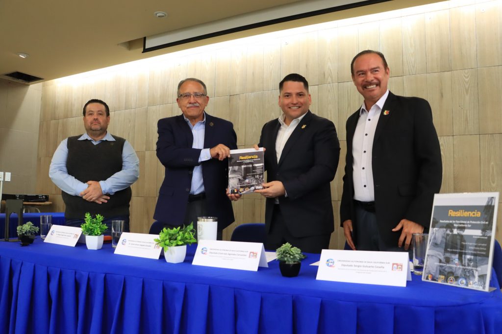 La Universidad Autónoma de Baja California Sur (UABCS) presentó y realizó la entrega oficial a la Comisión Permanente de Protección Civil del Congreso del Estado de la obra editorial “Resiliencia”, una memoria que reúne los resultados de las mesas de trabajo desarrolladas durante el Foro Estatal de Protección Civil 2025.