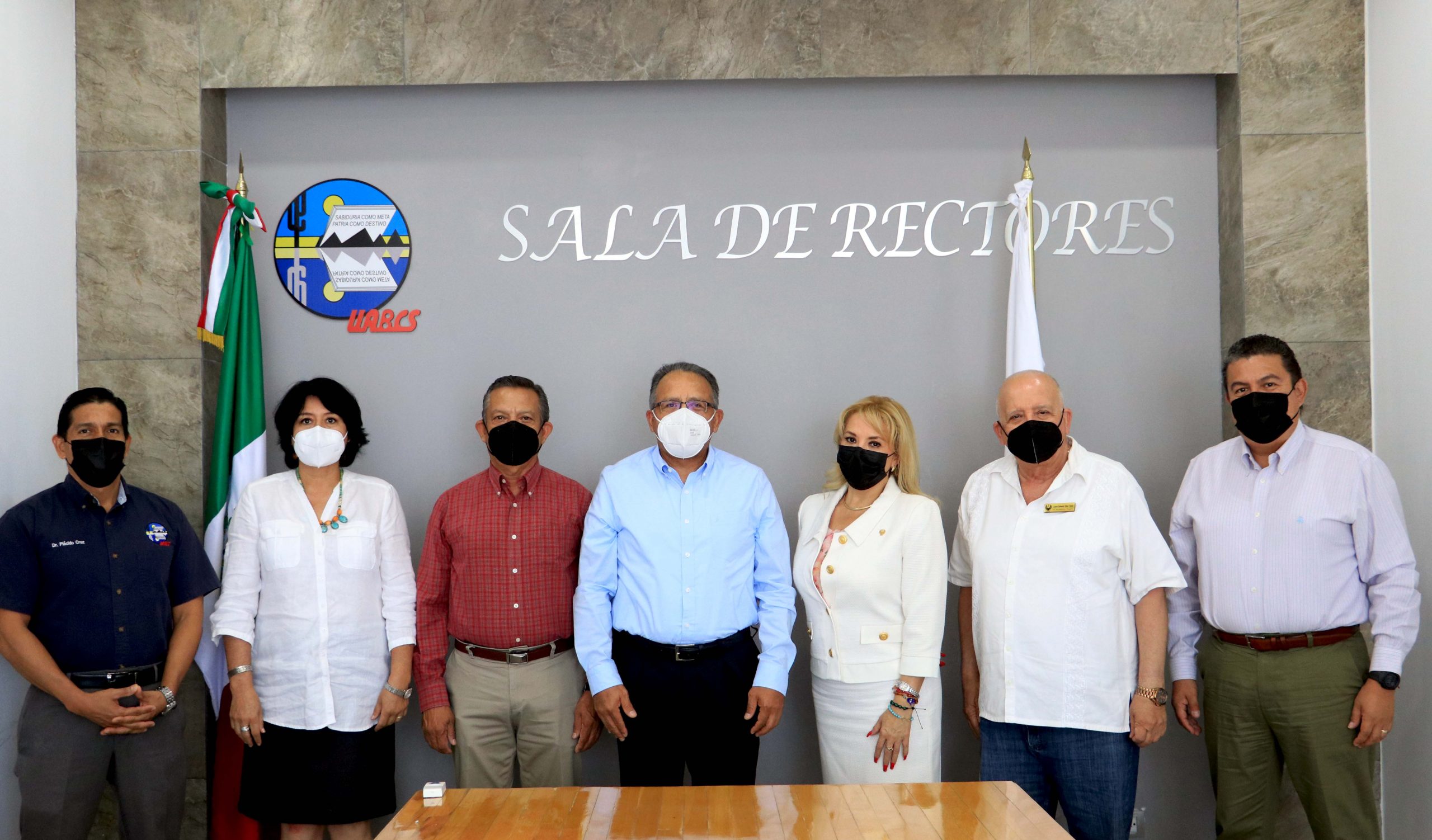 Con miras a desarrollar proyectos académicos y de educación continua interinstitucionales, el rector de la Universidad Autónoma de Baja California Sur (UABCS), Dr. Dante Salgado González, sostuvo en encuentro con Dra. Yolanda Razo Abundis e Ing. Rodolfo Pimentel González, rectores de las universidades del Golfo de California (UGC) y Tecnológica de La Paz (UTLP), respectivamente.