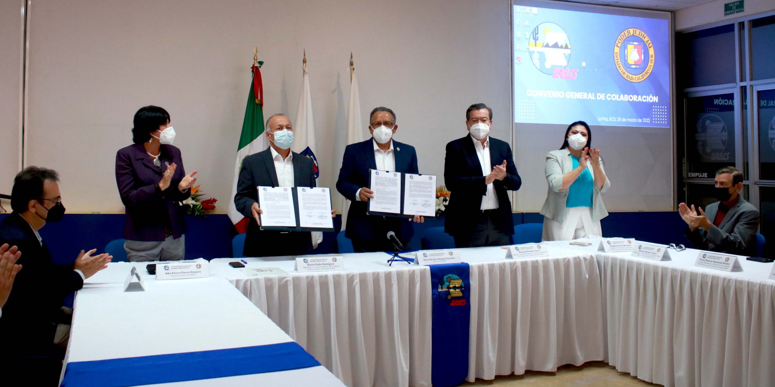 En la búsqueda de fortalecer la cultura de la legalidad, los derechos humanos, la justicia y la responsabilidad social, la Universidad Autónoma de Baja California Sur (UABCS) y el Poder Judicial del Estado (PJEBCS) celebraron la firma de un acuerdo de colaboración, con sede en la casa de estudios.