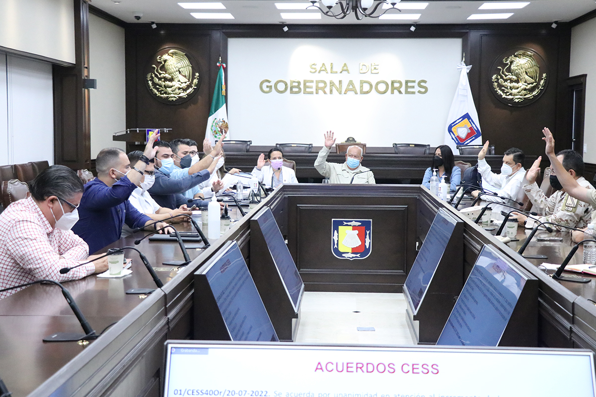 Se informó que la ocupación hospitalaria por Covid, que este día es de 23 pacientes internados, de los cuales tres están intubados, el titular del Ejecutivo Estatal convocó a la población en general para mantener la guardia en alto con la desinfección frecuente de manos, la ventilación de espacios y el resguardo domiciliario cuando se presenten síntomas respiratorios para limitar la transmisión del virus y con esto proteger a quienes tienen condiciones de salud más vulnerables. En esta sesión se tomó el acuerdo de que se mantengan el aforo al 60 por ciento en espacios cerrados de La Paz y limite de horario para establecimientos a las 2am. En Los Cabos, Comondú y Mulegé un aforo de 70 por ciento y restricción de horario a las 3am.